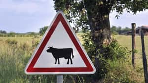 Auto fährt auf der Straße Rind an