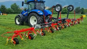 Der gezogene Zetter OZ-1110 mit zehn Rotoren und einer Arbeitsbreite von 11,1 m erreicht eine Flächenleistung von bis zu 12,3 ha/h. Außerdem neu ist das Scheibenmähwerk SD-340.