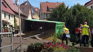 Bei einem Unfall in Reutlingen ist eine ganze Anhängerladung Äpfel auf die Straße gekippt.